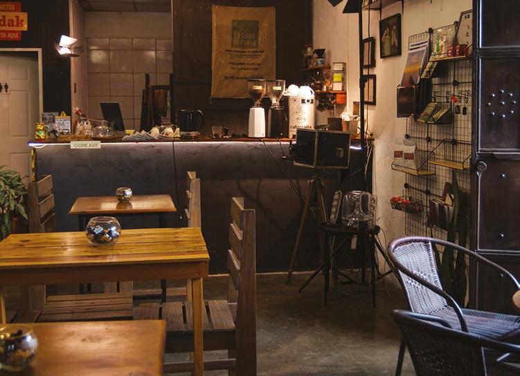 Aquí se viene por una buena taza, sí, pero también a mirar, conversar y aprender. Dentro del espacio conviven una colección de más de setenta cámaras análogas de todos los tiempos, venta de rollos y servicio de revelado a color y blanco y negro. Este último tiene su sello: el caffenol, una técnica de revelado con café que se convirtió en parte esencial del concepto y que, además, impulsó talleres personalizados donde se aprenden fundamentos de fotografía analógica, cómo operar una cámara y montar un rollo correctamente, principios para dispararlo y el proceso de revelado guiado con café. Gracias a esta técnica, Daniela ha impartido talleres también en México, volviéndose un atractivo para quienes visitan Antigua y buscan experiencias creativas.