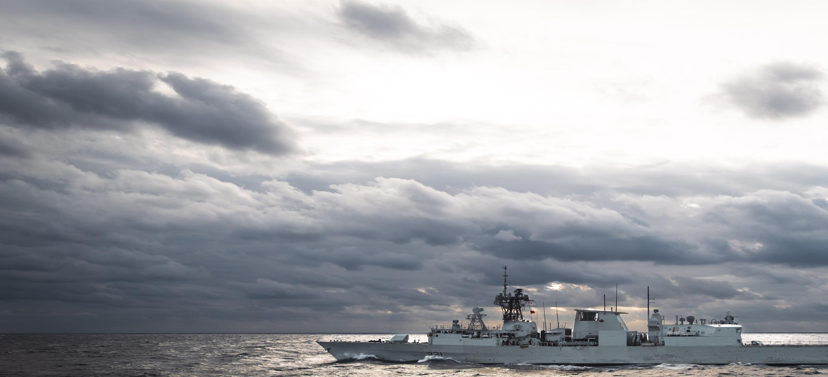 HMCS Vancouver transits through the Taiwan Strait on Sept. 20 to begin the support of Operation Neon. Photo provided by US Navy.