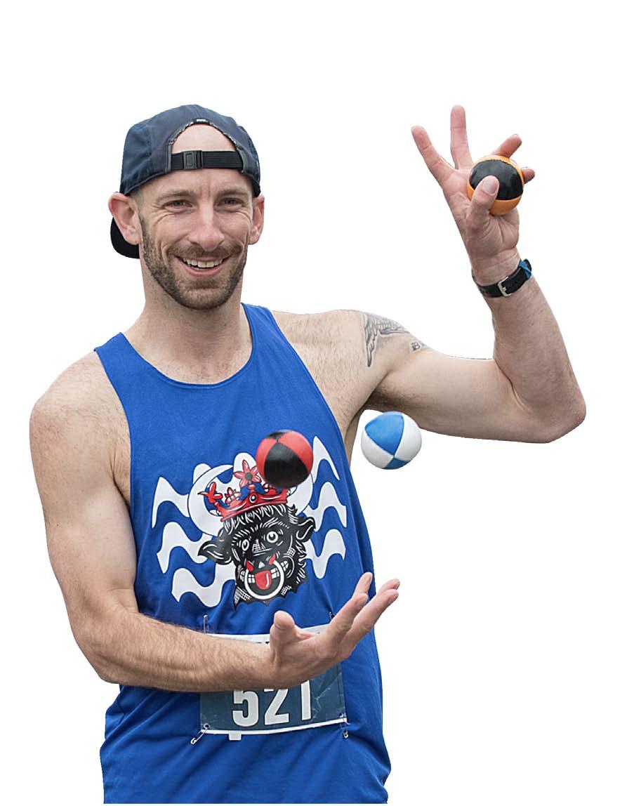 σ Lt(N) Michael-Lucien Bergeron turns heads while simultaneously performing a juggling act and running to victory in the 5 km race at the annual Navy Run.