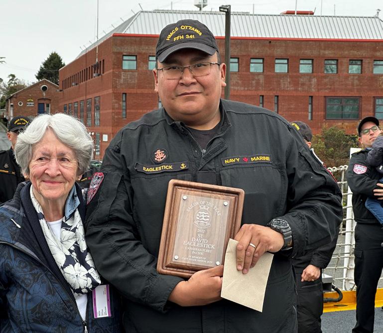 Sailor First Class (S1) David Eaglestick was presented with the Sailor of the Year award on Apr. 22 by Commodore David Mazur, Commander, Canadian Fleet Pacific, during HMCS Ottawa’s Family Day Sail. S1 Eaglestick is a boatswain onboard HMCS Ottawa and is integral to the ship's company. This year, he was the artist behind Ottawa’s new morale patch, based on a traditional art form used by West Coast Nations.