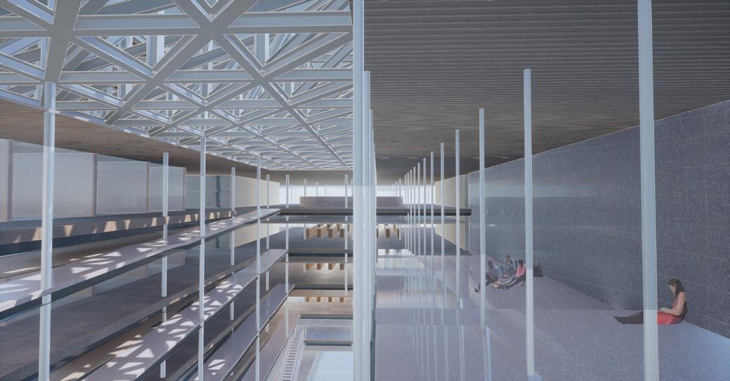 The sections vividly illustrate the progression of the central ramp as it descends from the sunken plaza into the heart of the library. This arrangement is to unfold a sequence of discovery. As visitors traverse the ramp, they are gradually exposed to new perspectives of the central void.