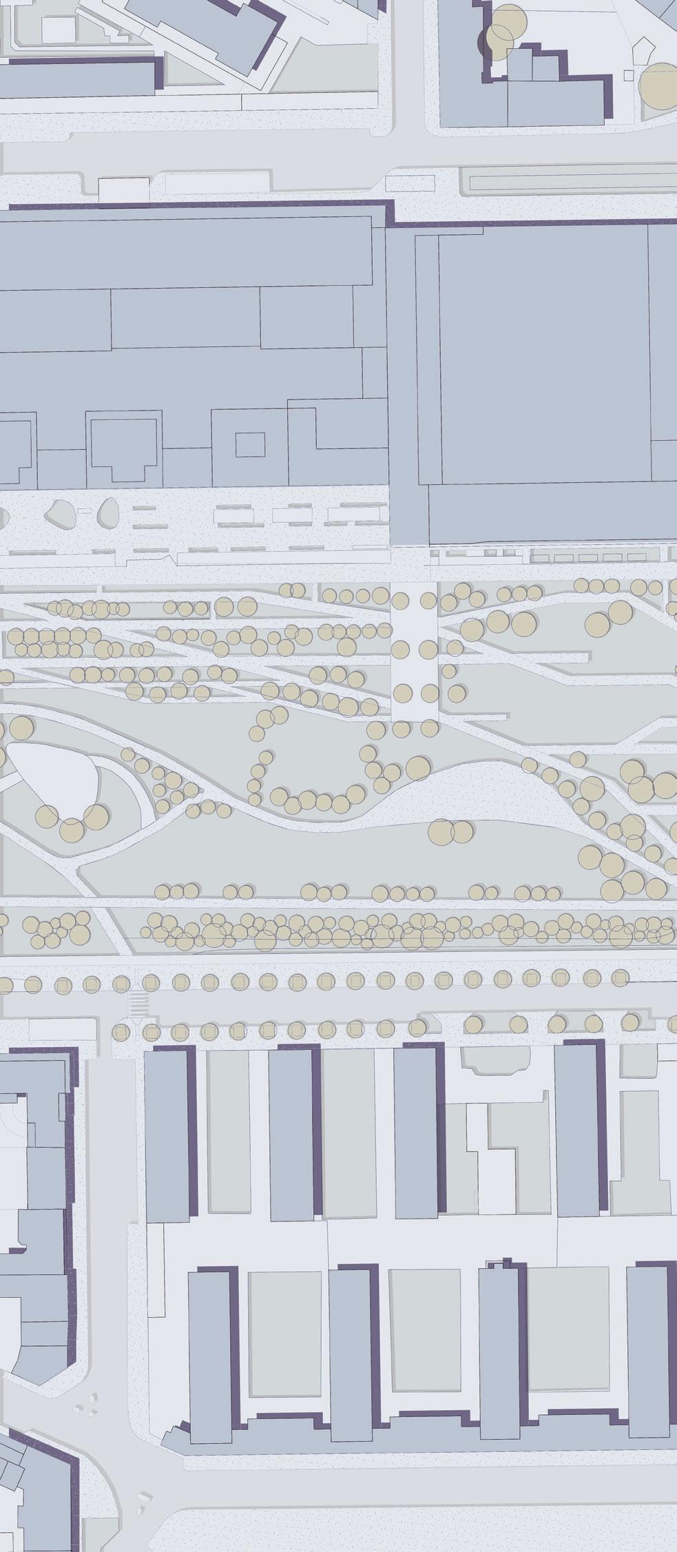 The masterplan of our design has a clear path that leads people from the ground level of the building, beginning at the metro entrance/exit, all the way to the park on the western side. This architectural feature provides a smooth and intuitive connection for people moving between these points.