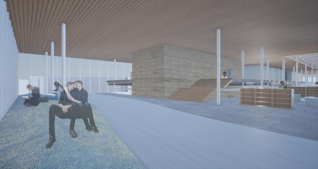 The western segment of this floor has a different reading landscape in the form of an island that reinvents the act of reading, introducing an immersive experience akin to discovering a literary oasis. This innovative configuration captivates the senses and redefines the relationship between architecture and engagement.
