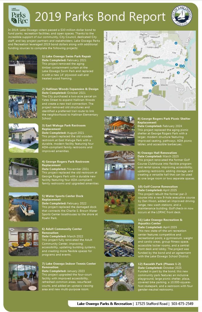 Lake Oswego Parks & Recreation’s mission is to Build Community, Enrich Lives and Care for the Urban and Natural Environment. This report is a look back and summary of operations supporting our mission and promise of excellent services to the people of Lake Oswego.