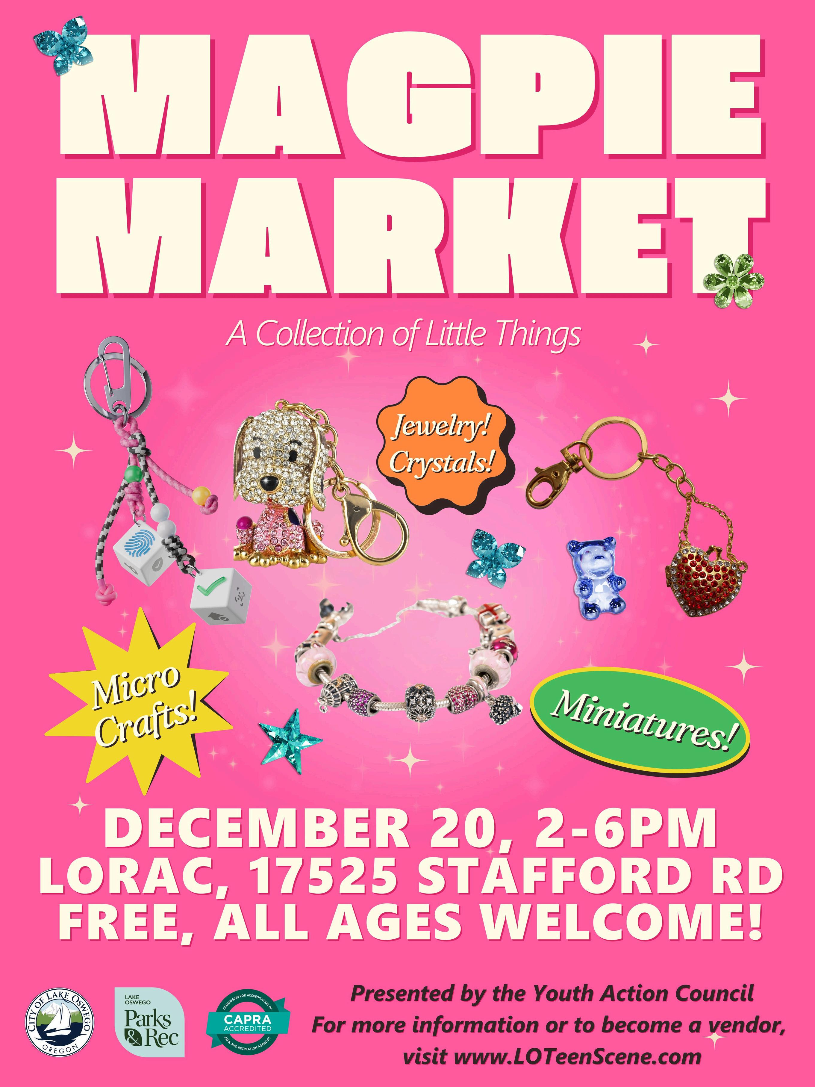 The Youth Action Council is busy!! After their October retreat they kicked into high gear to plan their activities for the remainder of 2025. First, they raised over $900 for the Covers for Kids Program that helps purchase fleece yards to make blankets for the Clackamas Children’s Center. The blankets get made in December at both high schools during lunch breaks and are then donated over Winter Break. For December, YAC has planned the Magpie Market, a holiday market geared towards tiny trinkets, collectibles, jewelry and more! The event will be held at Oswego Hall on Saturday, December 20 from 2-6pm and is a free, allages holiday market! Also on the docket for YAC – the YAC Book Swap in January and applications are open for the Outside the Art Room show in April!