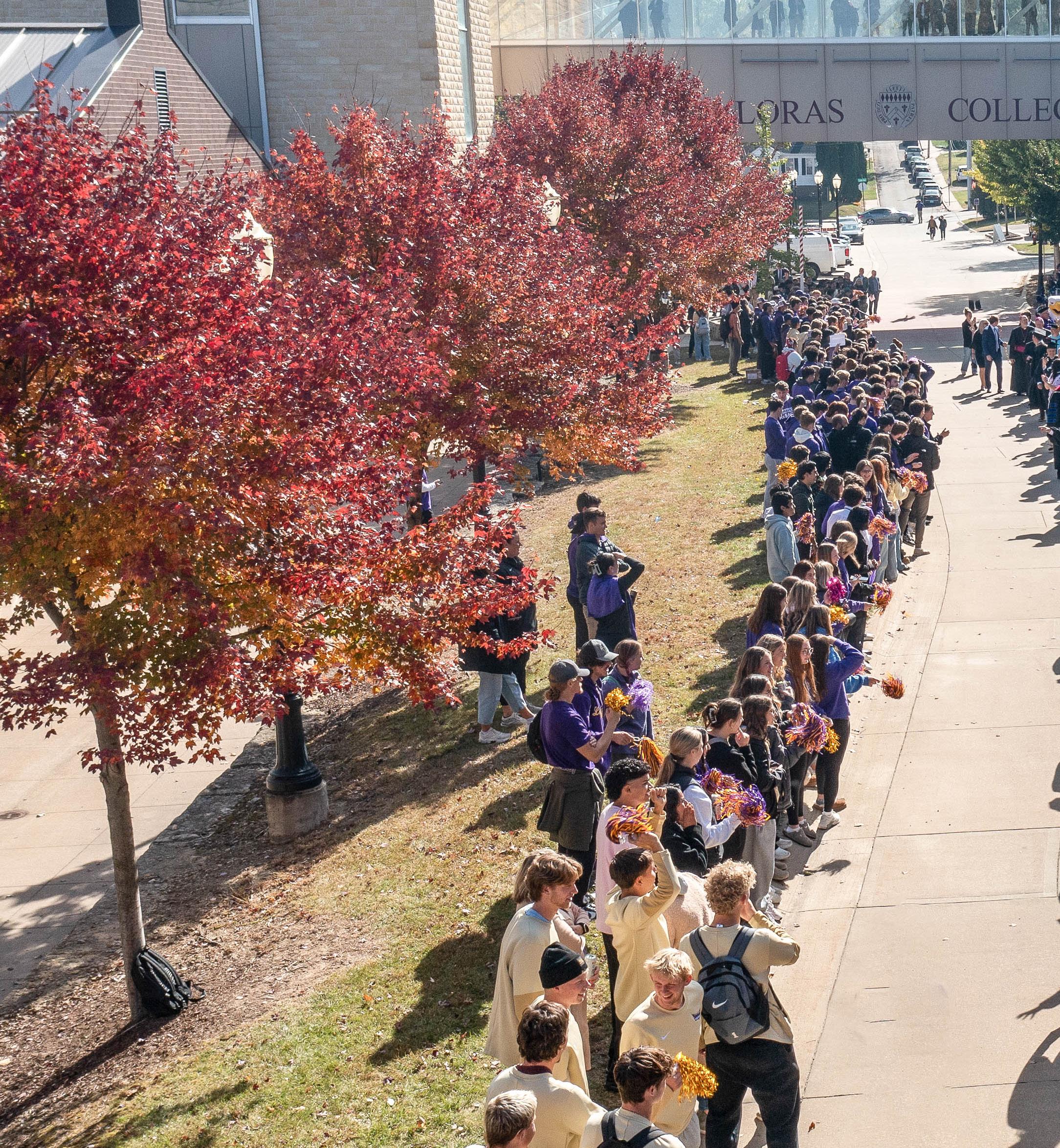 Loras College has so much to celebrate every day in our classrooms, residence halls, meeting spaces, and chapel. Our athletic fields and performance spaces are full of energy and inspiration. I invite all of you to visit our campus and see what it means to be a “Duhawk.” We are a vibrant community that invites students to explore who they are now, and who they can become for the future. I am grateful to be part of the Dubuque community and the Loras community as we partner together.
