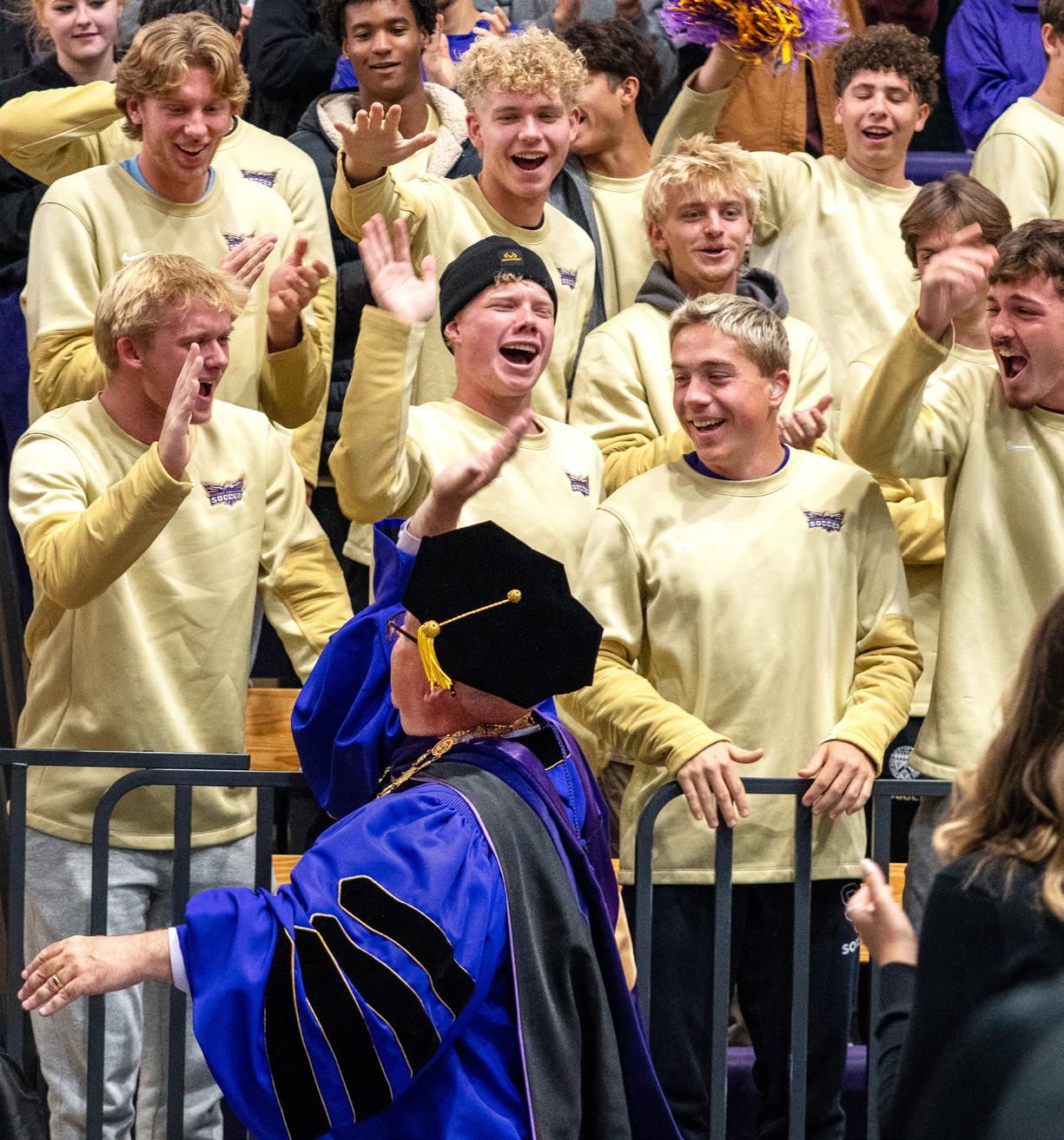 The celebration began with Mass at the Cathedral of St. Raphael in downtown Dubuque, where members of the Loras community joined in prayer and reflection, offering gratitude for the College’s enduring Catholic heritage and hope for the years to come. Later that afternoon, a spirited crowd packed the Patrick J. Lillis (’71) Athletic & Wellness Center for the formal inauguration ceremony, capturing the enthusiasm and unity that define Loras College.