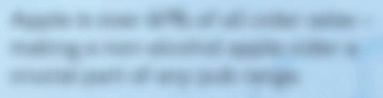 Apple is over 61% of all cider sales –making a non-alcohol apple cider a crucial part of any pub range.
