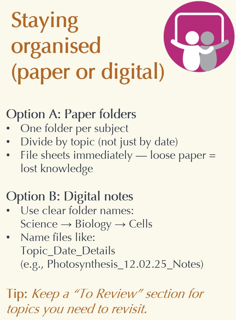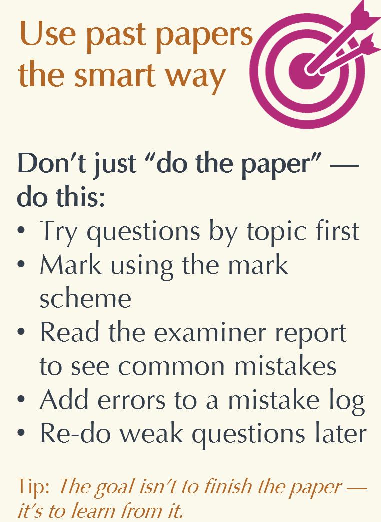 • Past papers – work through practice papers to check your understanding and work on exam technique.