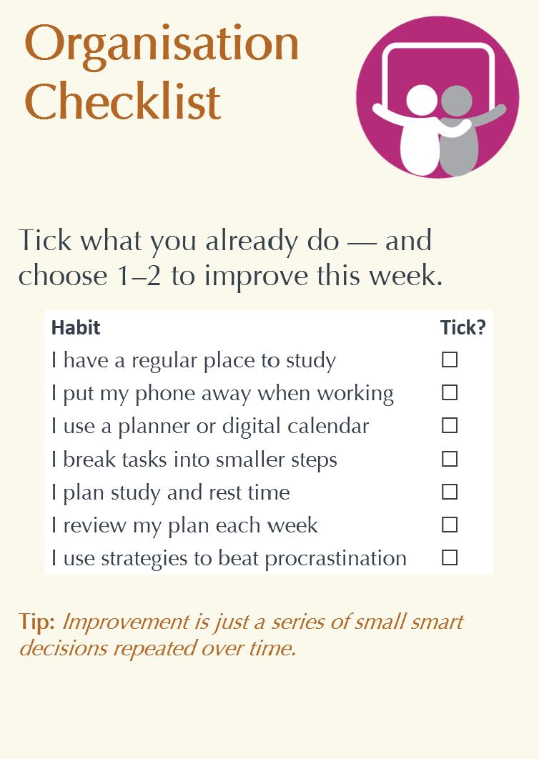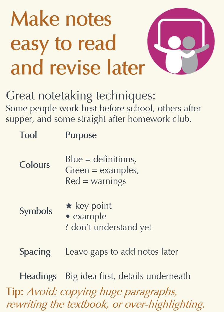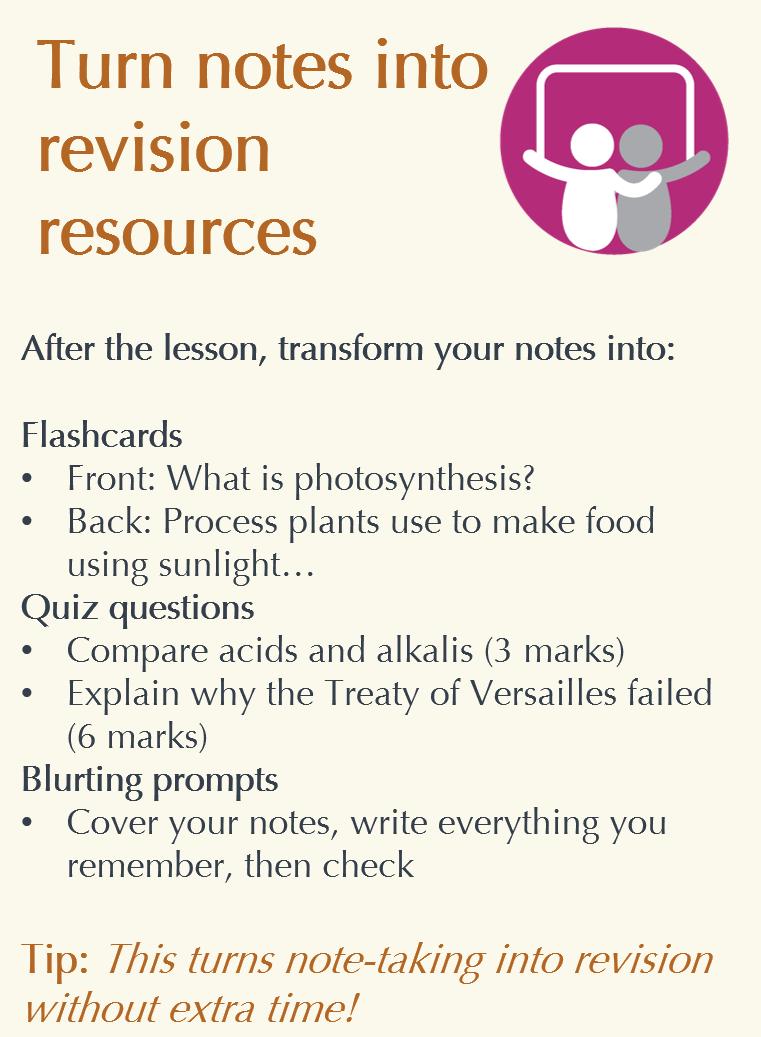 • A chance to experiment with revsion and study skills strategies.
