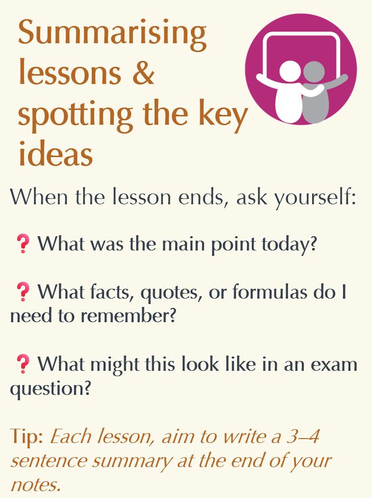 • Use your own words, but use the key topic language (to avoid simply copying without understanding)
