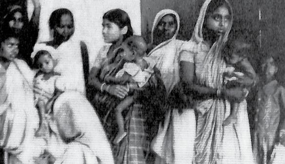 In this photo taken in 1975, mothers in Thakurpukur bring children to a clinic funded by the Childin-Need Project to bring food to those affected by severe famine.