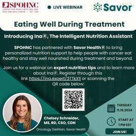 • Introducing INA: This month, we’re excited to announce INA, an AI-driven nutritional support app designed specifically for the cancer community. INA will assist patients, survivors, and caregivers with their unique nutritional needs. Survivor Thelma shared, “My speech sometimes isn’t flawless, and my swallowing isn’t always the best, but I’m maintaining my weight with some of the recipes from SPOHNC’s cookbook. I love the articles in the newsletter –it is an easy way to educate my family on what is going on with me. Thank you for all the work you do.”