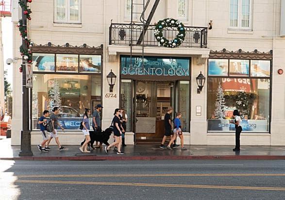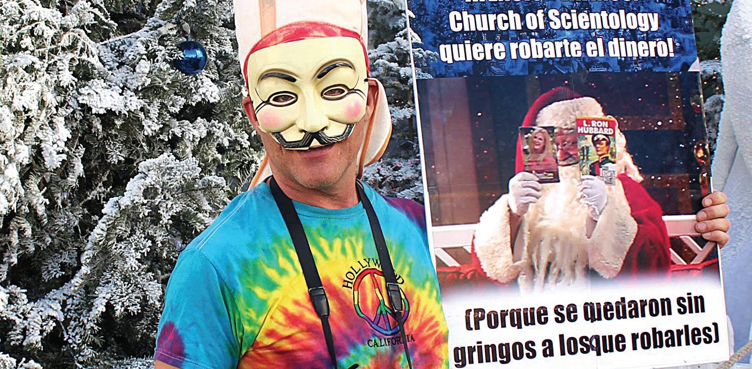 Holidays are particularly special—such as this year’s Hollywood Christmas Parade down Hollywood Boulevard, passing the Hollywood Inn at North McCadden Place where Kight used to live and from whence the first Gay Pride Parade set off in 1970. This Nov. 26, Thanksgiving weekend, the Scientology recruiters were out in force, offering free “Personality Tests” as a lure into the “Everyone’s Welcome” Information Center. That night their annual Winter Wonderland aimed to entice Latino children to sit on Santa’s lap and get a cheap toy and L. Ron Hubbard pulp fiction. There, too, were the merry band of gay pranksters, calling out Scientology’s homophobia and squaring off with annoyed guards.