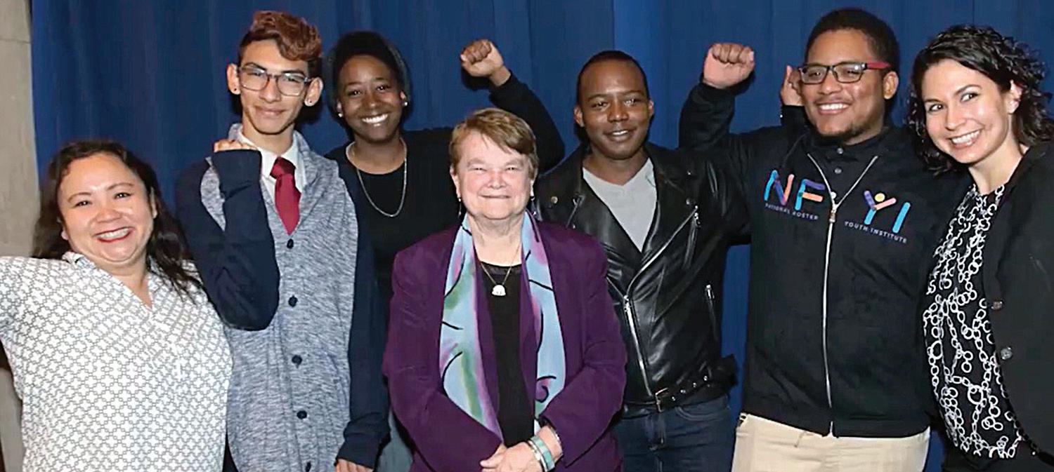 Supervisor Sheila Kuehl with foster kids and staff at a Board of Supervisors meeting.