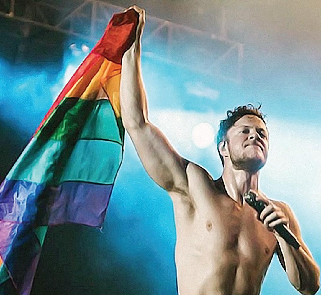 Imagine Dragons lead singer Dan Reynolds showed his support for the LGBT community by waving a rainbow flag at the Lollapalooza Brazil Festival in Sao Paulo.