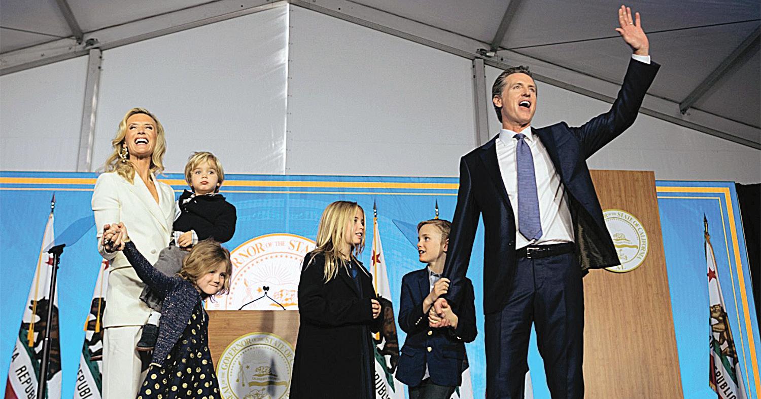 “Today is for the daughters of Chinese immigrants in San Francisco and New York [State Controller Betty Yee and Treasurer Fiona Ma], for the sons of Mexican immigrants in Los Angeles and Sacramento [Sec. of State Alex Padilla and Attorney Gen. Xavier Becerra] and for the son of a single mother, a schoolteacher from Panama [Superintendent of Public Instruction Tony Thurmond].”