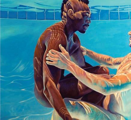 “David Jester, for instance, does these kind of precious paintings of men in pools, swimming –but they’re not sexual, they’re emotional paintings. They’re very beautiful.”