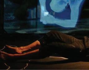 “The whole story is told with a combination of words, movement, music, video,” Kelly says, “and as I go through each of the episodes, I’m drawing on the floor with chalk, so the history accumulates through the course of the work, and by the end the stage is pretty much covered in chalk drawings which are also getting obliterated, as I walk over them.”