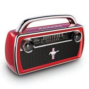 The Ford Mustang boombox ($110) has Bluetooth connectivity and comes with two full-range speakers, deep bass radiator and rechargeable battery. The cool design is mid-century modern, with an AM/FM tuning dial that looks like the speedometer from a classic 1960s Stang.