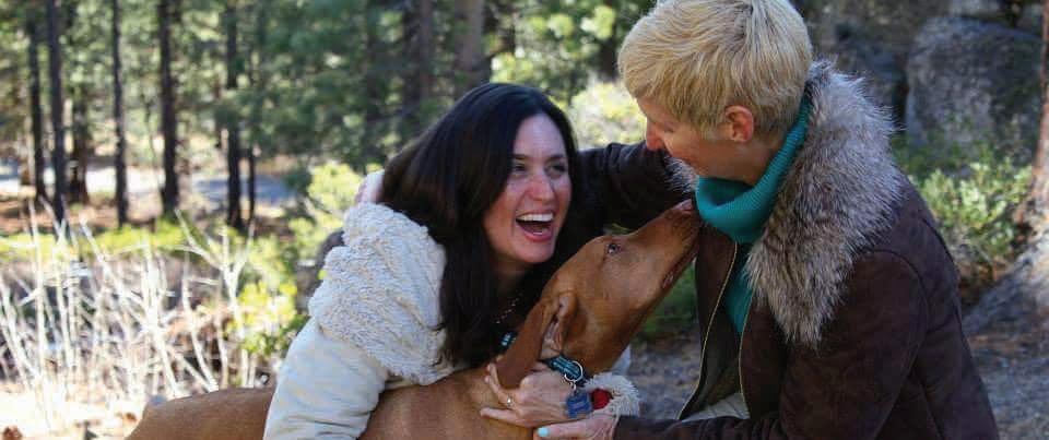 Sherry Powell with her wife Janie Brackenridge and their dog Rudi.
