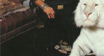 to state it explicitly. They donned capes and silver space suits, battled a sorceress and a fire-breathing dragon amidst smoke machines, lasers and, of course, lions and tigers, many of which were white, which are uber rare. Their act had a Liberace-esque flair to it, even if neither were ever quite that fey. Siegfried was the magician; Roy the animal trainer. They presented a yin/yang-type persona and lived together at Jungle Palace, an eight-acre Vegas estate (a much larger ranch was just outside the city proper) with, as of 1999, 55 tigers and 16 lions. Horn was the “Tiger King” decades before anybody heard of Joe Exotic (also gay) of the hit Netflix series.