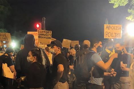 throughout the night. Among the signs they carried read, “Abolish Police,” “Defund the Police,” “Blue Lives Murder” and “White Silence is Violence.”