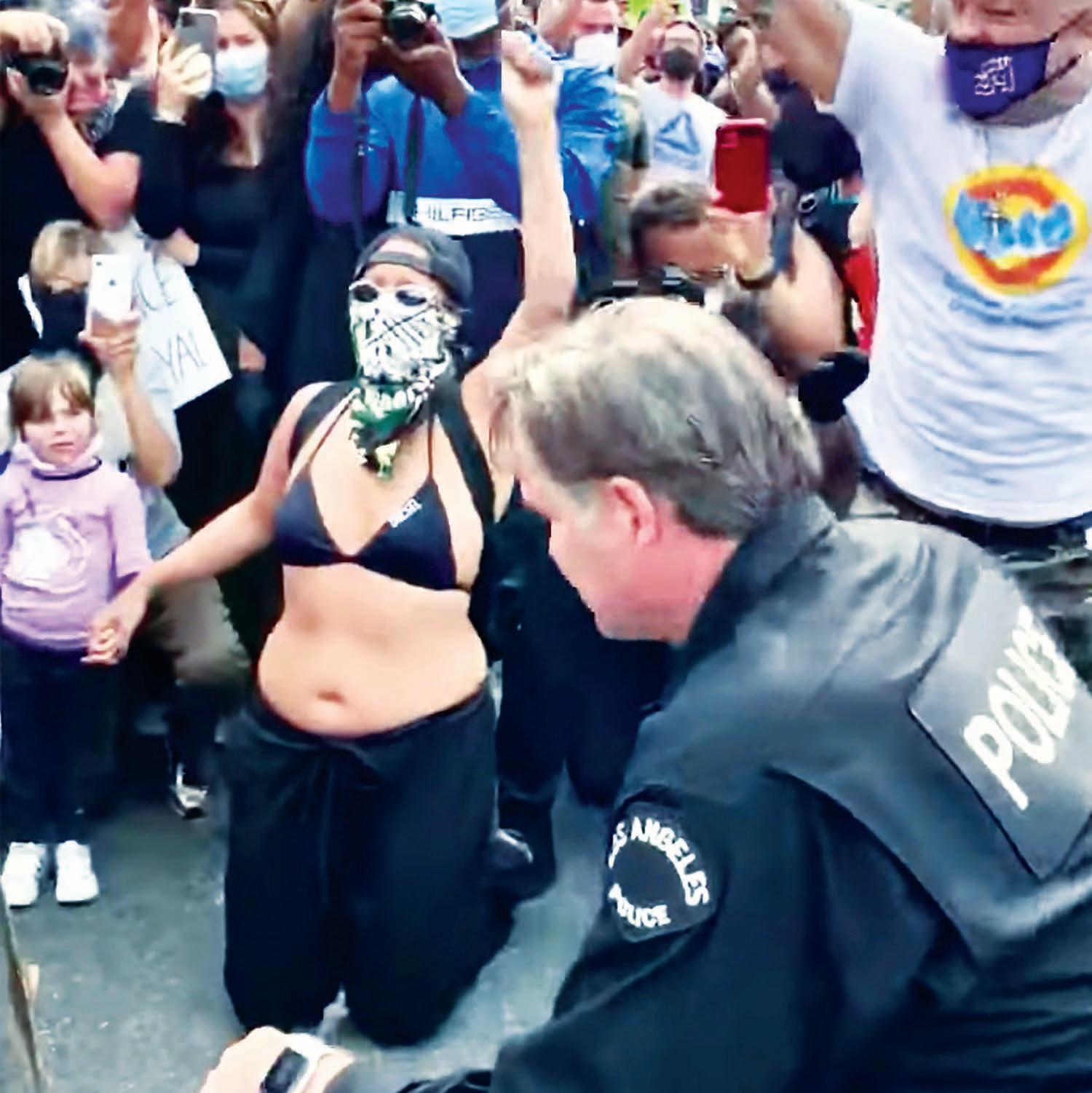 LAPD commander takes a knee with anti-racism protesters,
