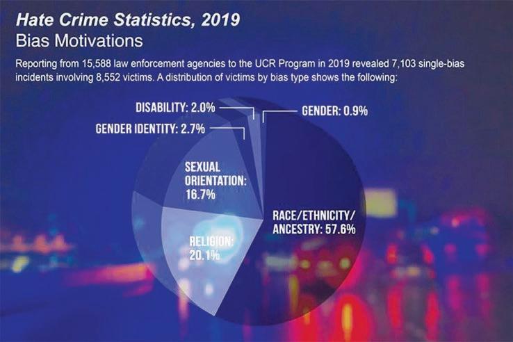 The 2019 information was submitted by 15,588 law enforcement agencies, outlines data about the offenses, victims, offenders, and locations of hate crimes. Because reporting hate crimes to the FBI is not mandatory, those statistics likely represent only a fraction of