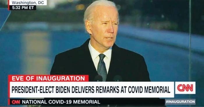 In brief remarks just prior to the illumination of 400 lamps, each symbolizing 1,000 American lives lost, President-elect Joe Biden told those gathered and those watching online, “It’s hard sometimes to remember, but that’s how we heal. It’s important to do that as a nation,” he said.