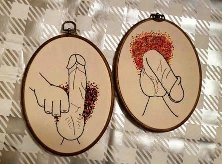 Does your S.O. carry a galleryworthy weapon between his, her, or their legs? Immortalize and celebrate it on your own hall walls with detailed cross-stitched hoops embellished with vibrant beading handmade by artist Andrew Emel and available on Etsy at StitchedPeensShop. NSFW photos of finished commissions @stitched_ peens on Instagram.