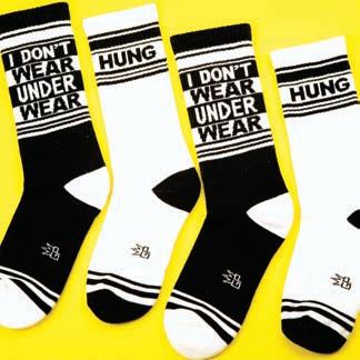 Pique the curiosity of cute cruisers-by in Gumball Poodle’s statement crew socks that give a glimpse into your playful personality. With conversation-starting styles like “I Don’t Wear Underwear,” “Daddy,” “Hung,” and “I’d Rather Be Naked,” you’ll have a couple legs up on the competition.
