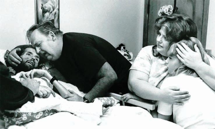 Too many gay men were scared shitless. When LA gay Frontiers News Magazine re-published Kramer’s article as their March 30 cover story, bar owners threw the publication out, lest it unnerve patrons. Meanwhile, gay men wasted away and died, often alone, sometimes stranded on a gurney in a hospital hallway; sometimes – if lucky – with family or friends crying at their bedside as in the intimate photo taken by Therese Frare as her friend AIDS activist David Kirby died.