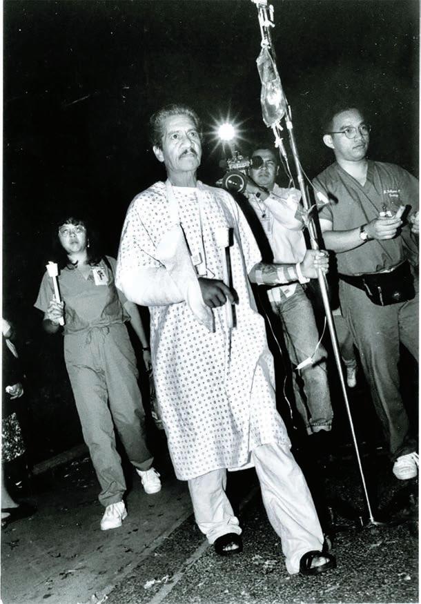 Directors with Weisman and longtime checkbook activist attorney Diane Abbitt as co-chairs. They gaveled their first board meeting to order on Jan. 14, 1983 with five clients. The following month, APLA produced and distributed a brochure about AIDS in both English and Spanish. Four months later, in May, APLA and other activists organized the first candlelight march in Los Angeles at the Federal Building in Westwood and in four other cities. The LA event was attended by more than 5,000 people demanding federal action. The KS/AIDS Foundation in San Francisco was led by people with AIDS carrying a banner that read “Fighting For Our Lives.” When the banner was unfurled at the National Lesbian and Gay Health Conference that June by activists presenting The Denver Principles, the crowd cried, with a 10-minute ovation.