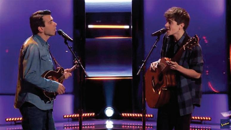 The unique folksy blend of the voices in a sweet rendition of the John Denver classic song “Leaving on a Jet Plane” this week on NBC’s The Voice, caused celebrity judges Kelly Clarkson and Ariana Grande to mash their buttons and turn their chairs around and face the performance.