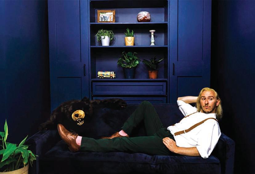 “I came up in the dark basements, backyards, and back rooms of bars that is the Brooklyn comedy scene where, believe it or not, singing songs about banging someone’s dad or saying “no homo” in the 1800s or driving a tractor through the wall of a middle school is not that out there. On stage I’ve dumped cold soup on my head, coated a stage in lotion, made out with tons of people, performed an entire musical about female masturbation in drag, and done improv in a thong. I’ve learned from so many amazing gay and queer artists in my community, and I’m proud and grateful to carry their influence into my work,” he says.