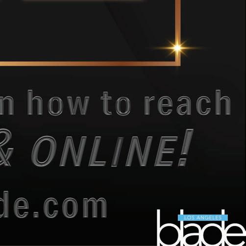 All material in the Los Angeles Blade is protected by federal copyright law and may not be reproduced without the written consent of the Los Angeles Blade. e sexual orientation of advertisers, photographers, writers and cartoonists published herein is neither inferred nor implied. e appearance of names or pictorial representation does not necessarily indicate the sexual orientation of that person or persons. Although the Los Angeles Blade is supported by many ne advertisers, we cannot accept responsibility for claims made by advertisers. Unsolicited editorial material is accepted by the Los Angeles Blade, but the paper cannot take responsibility for its return. e editors reserve the right to accept, reject or edit any submission. A single copy of the Los Angeles Blade is available from authorized distribution points, to any individual within a 50-mile radius of Los Angeles, CA. Multiple copies are available from the Los Angeles Blade o ce only. Call for rates. If you are unable to get to a convenient free distribution point, you may receive a 26-week mailed subscription for $195 per year or $5.00 per single issue. Checks or credit card orders can be sent to Phil Rockstroh at prockstroh@washblade.com. Postmaster: Send address changes to the Los Angeles Blade, PO BOX 53352 Washington, DC 20009. e Los Angeles Blade is published bi-weekly, on Friday, by Los Angeles Blade, LLC. Rates for businesses/institutions are $450 per year. Periodical postage paid at Los Angeles, CA., and additional mailing o ces. Editorial positions of the Los Angeles Blade are expressed in editorials and in editors’ notes as determined by the paper’s editors. Other opinions are those of the writers and do not necessarily represent the opinion of the Los Angeles Blade or its sta To submit a letter or commentary: Letters should be fewer than 400 words; commentaries should be fewer than 750 words. Submissions may be edited for content and length, and must include a name, address and phone number for veri cation. Send submissions by e-mail to tmasters@losangelesblade.com.