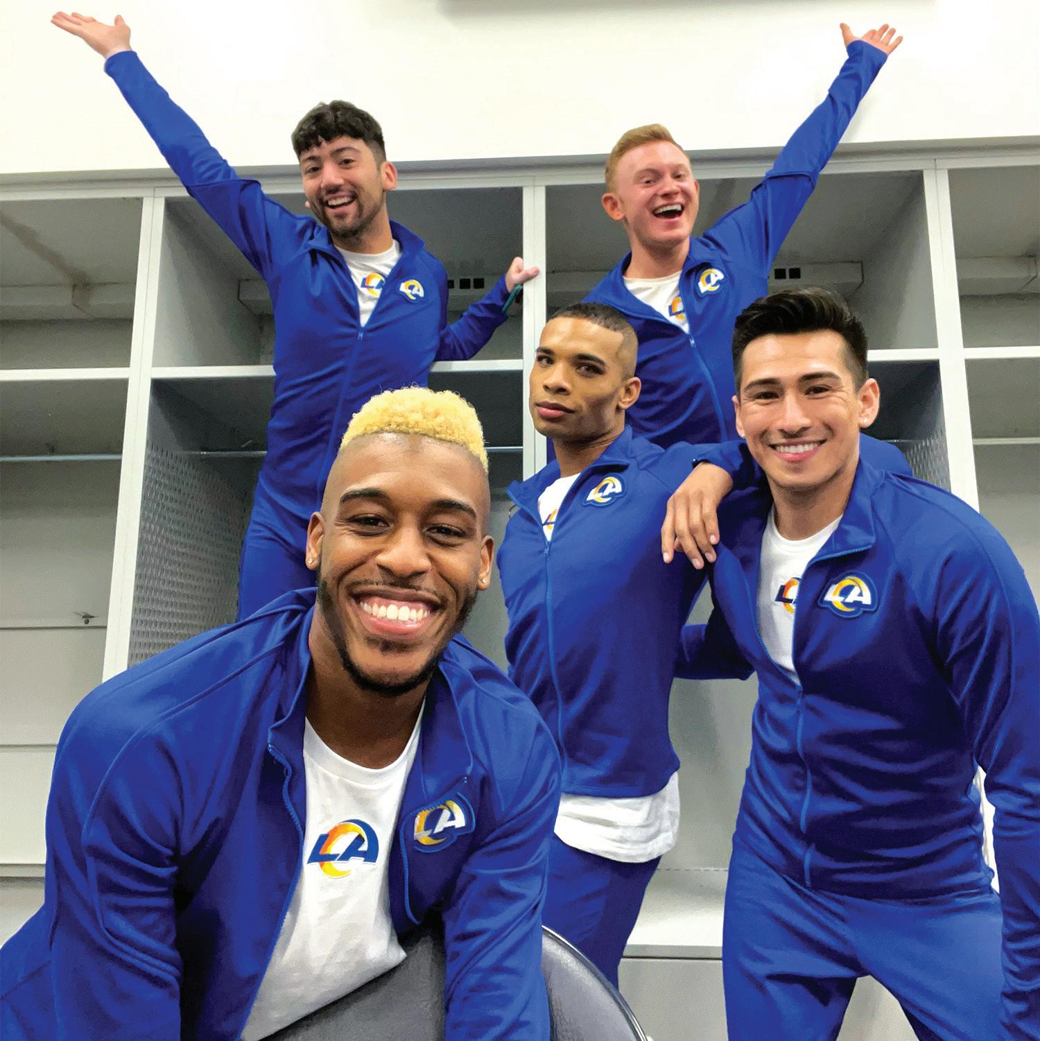 When the Los Angeles Rams brought the Vince Lombardi Trophy home to SoFi Stadium Sunday in the team’s 23-20 Super Bowl victory over the Cincinnati Bengals, it wasn’t just the coaches and the men in the jerseys, shoulder pads and cleats celebrating. The team won with the encouragement of five energetic, out and proud gay men, an essential part of the Rams squad of 28 cheerleaders.