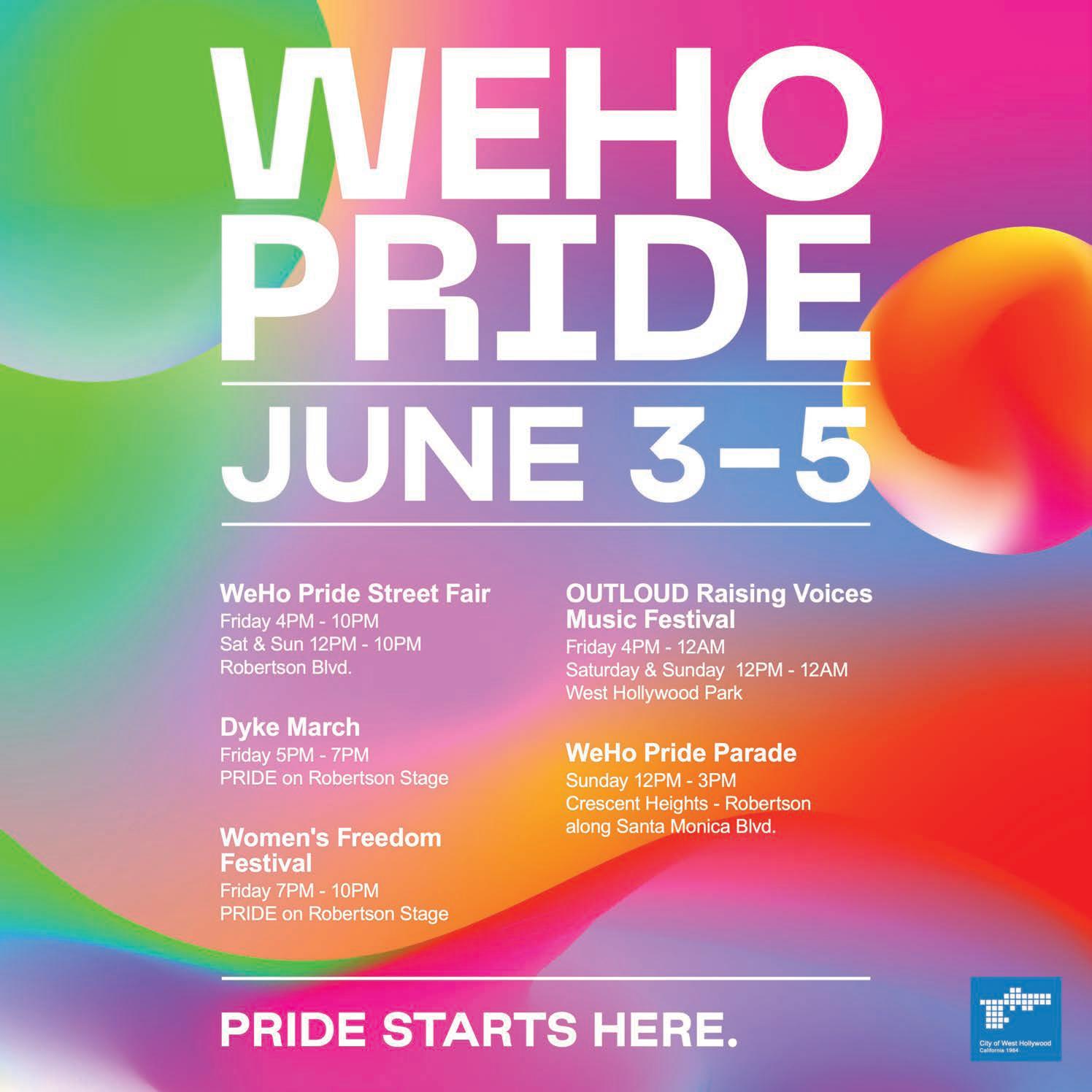 WeHo Pride Weekend Friday, June 3, 2022 Saturday, June 4, 2022 Sunday, June 5, 2022