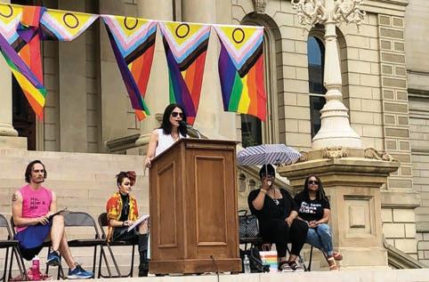 Michigan Attorney General 2+3+&34004# speaks at the Michigan state Capitol in Lansing, Mich., during a Pride event on June 26, 2022. (Photo courtesy of Nessel’s office)