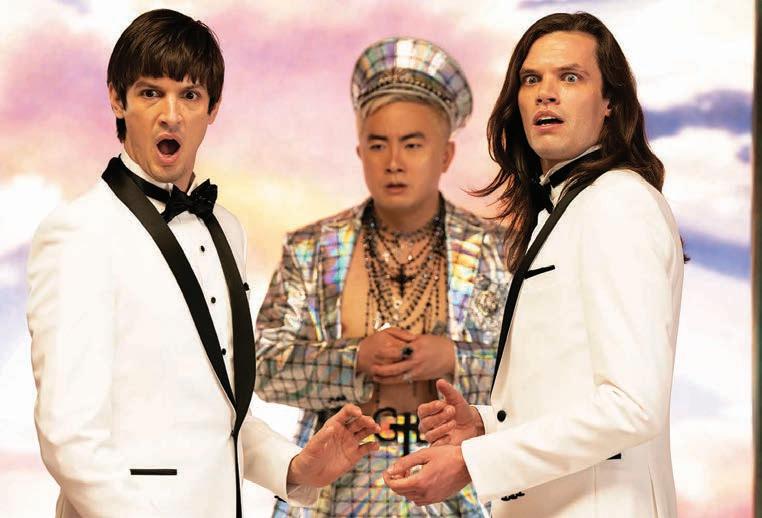 It’s all very over-the-top, played purely for laughs with full awareness of its own lack of substance or subtlety; there is nothing in it that could be described as believable, at least in any straightforward sense, and even our cursory synopsis above likely reveals the deeply imbedded queerness in both its storyline and its intent. Either of these factors would likely alienate a significant chunk of potential audience, and both together must surely eliminate the appeal for all but the most deviant of viewers. It’s utterly ridiculous, appallingly dysfunctional, and shamelessly perverted, all at the same time, and when it draws to a close, it offers up an unrepentantly transgressive finale presided over by none other than a very gay God Himself (Bowen Yang), who has served as narrator to the whole twisted tale from the beginning. Spoiler alert: it involves even deeper socio-sexual taboos than homosexuality.