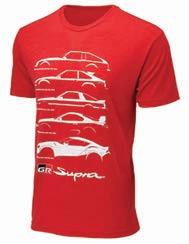 Celebrating Toyota’s renowned sportster, the GR Supra “Through the Years” T-shirt ($25) has screen-printed silhouettes of this super coupe from 1978 to today. Made of polyester, cotton and rayon, with tear-away label and side seams.