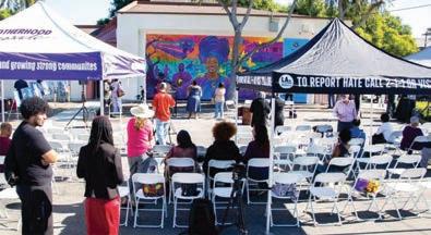 Executive Director of the LA County Commission on Human Relations Robin Toma highlighted the strength gained when community art uplifts and unifies, making communities more resistant to division. Poet Shandela Contreras spoke as did a hate-incident victim who also shared their story.
