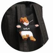 Kia also has its own stuffed animal: the hamster seatbelt buddy ($13), dressed in a black T-shirt and white Kia logo. Two Velcro aps on the back come together to fit any seatbelt.