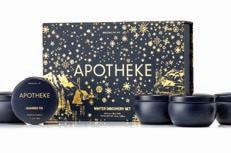honey, cardamon chestnut, charred fig, and firewood with a combined 90-hour burn time), and packaged in a nostalgically illustrated gift box accentuated by festive gold detailing. ApothekeCo.com, $64
