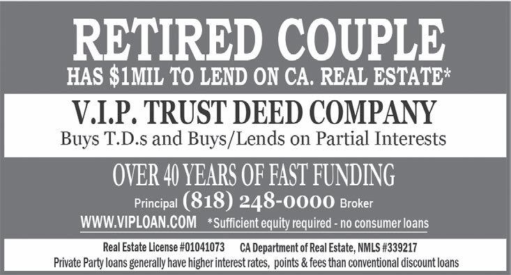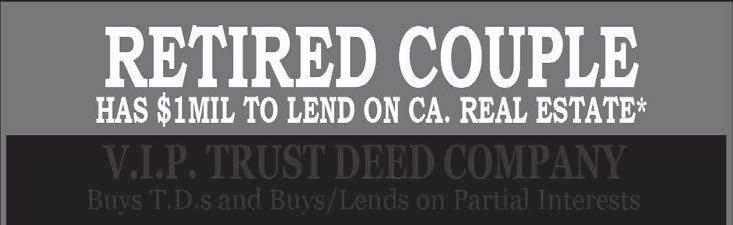 $1 MIL for business purpose Real Estate loans. Credit unimportant. V.I.P. Trust Deed Company www.viploan.com