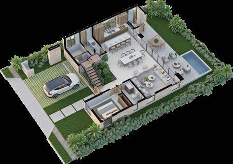» Áreas sociales y un dormitorio en el primer nivel distribuidos en 116.78 m²
