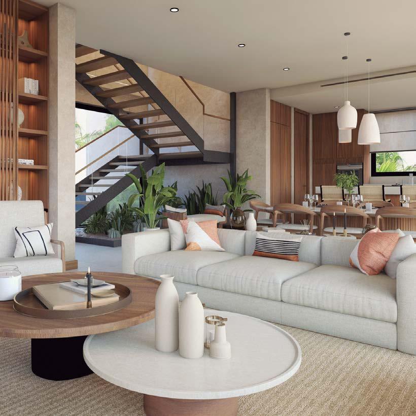 Diseñada con un estilo contemporáneo y espacios adaptados para disfrutar de las vistas, con opción de incluir mobiliario de diseñador artesanal por un costo adicional.