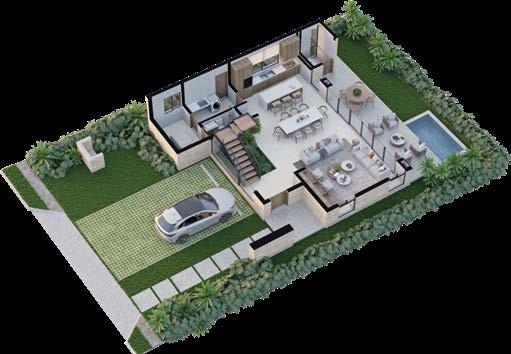 Diseñada con un estilo contemporáneo, cuenta con un dormitorio en la planta baja pensado para una mejor accesibilidad y espacios adaptados para disfrutar de las vistas. Además, ofrece la opción de incluir mobiliario de diseñador artesanal por un costo adicional.