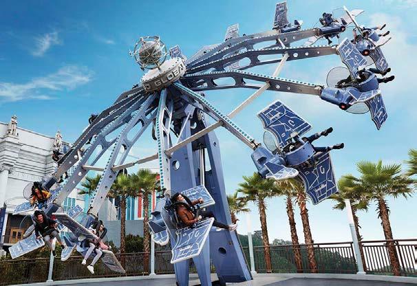 • Four arms in fast intermeshing orbits, eight gondolas at the end of the arms always remain upright, and riders catch air as they fly over the top of the ride!